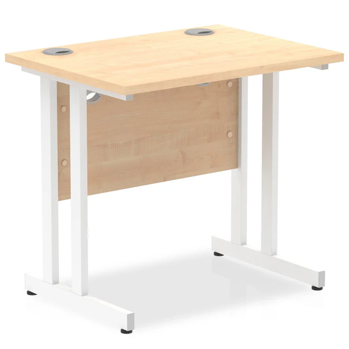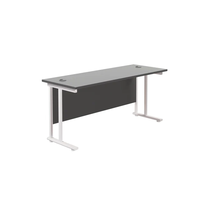 Start 600mm Cantilever Office Desk with 25mm heat & stain resistant top, cable ports, and modesty panel. Available in 5 finishes with white, silver, or black legs.