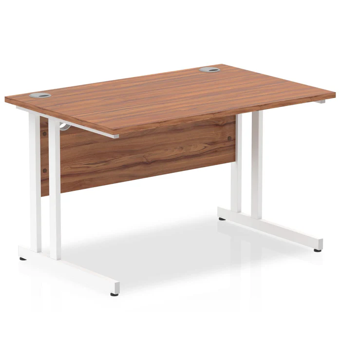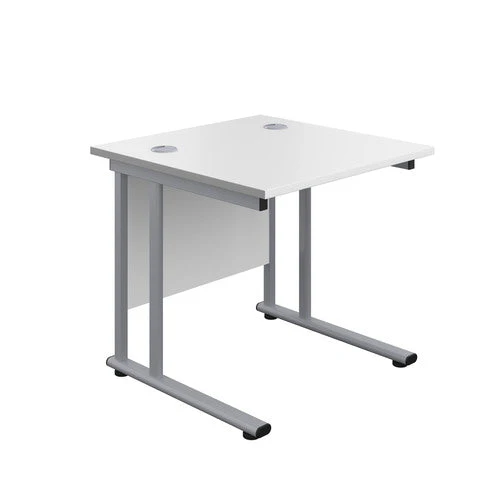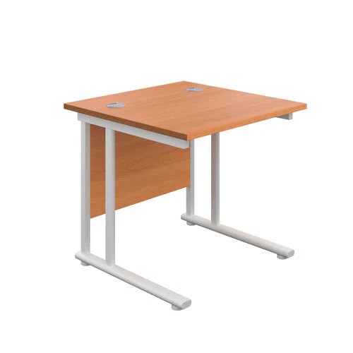 Start 800mm Deep Cantilever Office Desk with 25mm thick top, cable ports, and modesty panel. Available in 6 desktop finishes with white or silver legs.